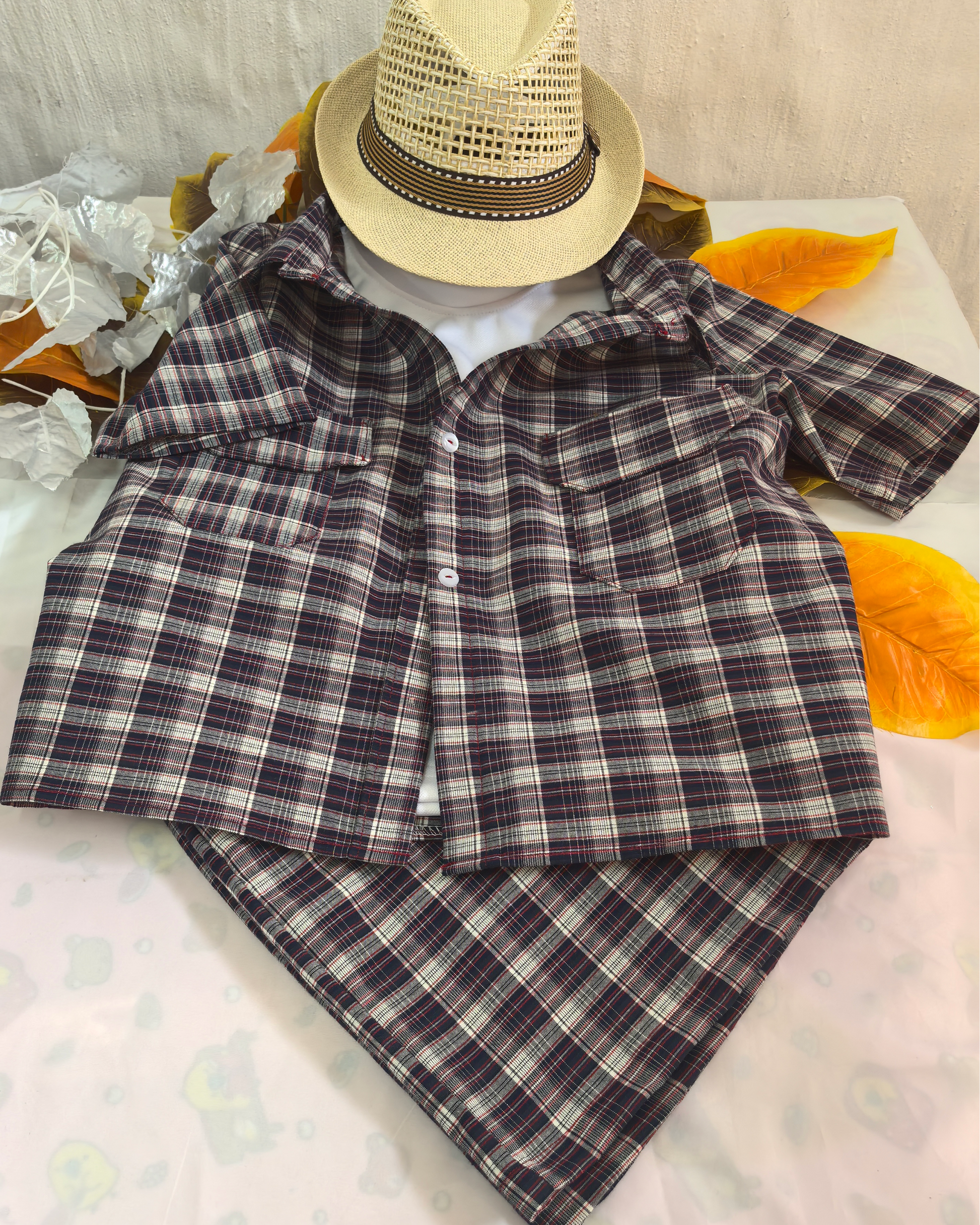 Dress it up or dress it down, this Boys Dark Check Set is perfect for any occasion. Featuring a dark check pattern, this set is versatile and stylish. Little ones will love the comfortable fit and parents will appreciate the durability. A must-have for any young boy's wardrobe!