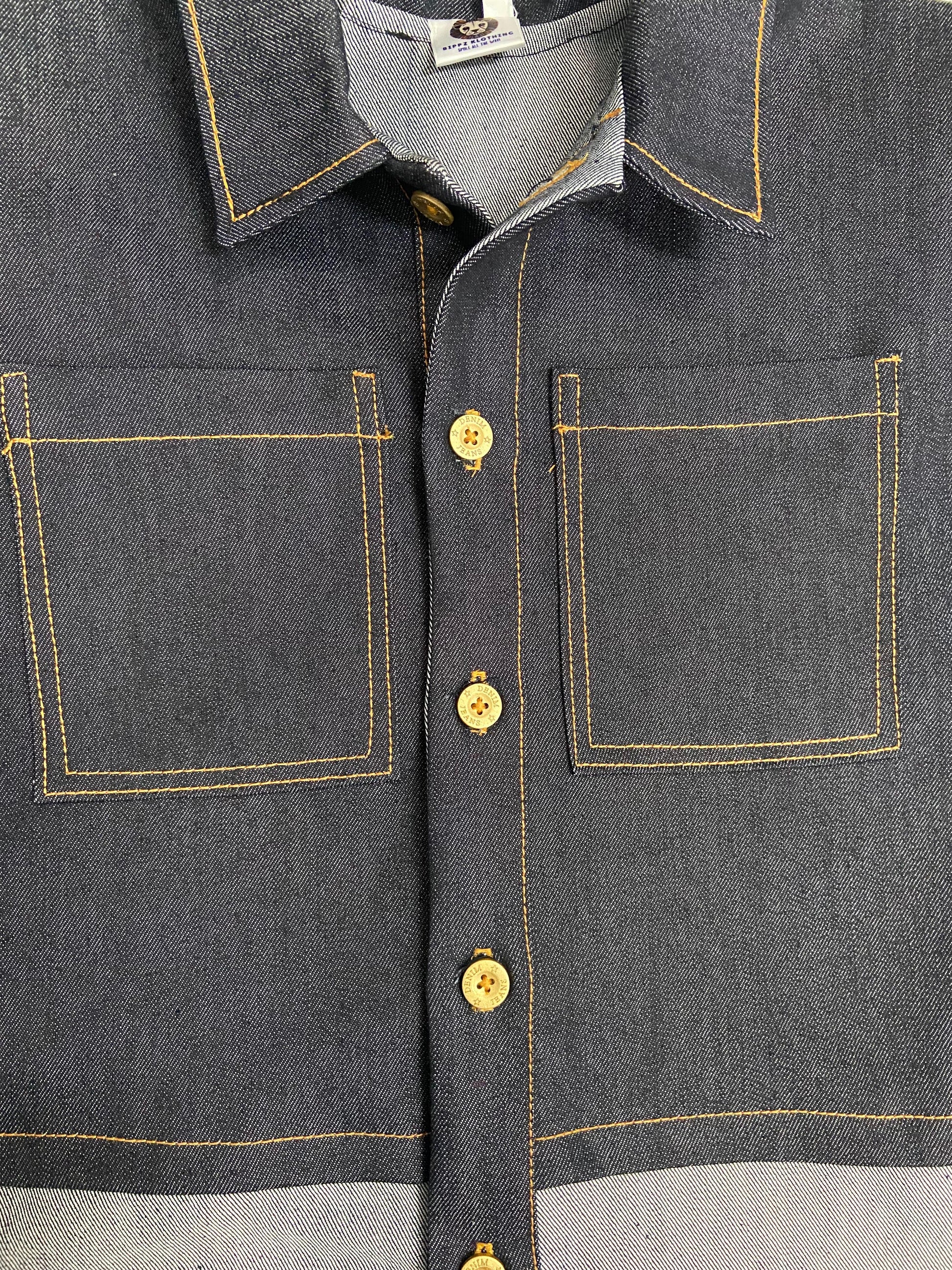 Elevate everyday style with this modern two-tone denim shirt — a versatile piece designed for comfort, durability, and effortless cool. Crafted from premium dark-wash denim with a contrasting light-grey panel at the hem and sleeve cuffs, this shirt brings a fresh twist to a classic look.