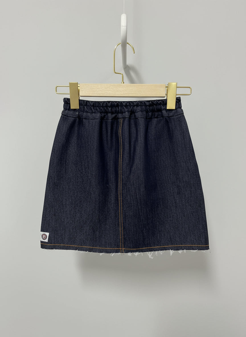 Crafted from sturdy, high-quality denim, the skirt is finished with a raw hem for an effortless, edgy look. A secure button closure at the waistband ensures a comfortable fit, making it easy to style for everyday wear or standout outfits.